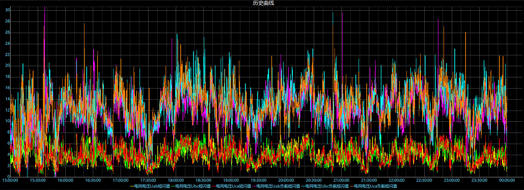 SVG運(yùn)行后電網(wǎng)電壓穩(wěn)定,功率因數(shù)高于0.95,諧波、負(fù)序及電壓閃變等電能質(zhì)量問題得到明顯改善。在并網(wǎng)點(diǎn)電能質(zhì)量明顯提升的同時,用戶水力發(fā)電機(jī)組運(yùn)行狀況也得以改善,電弧爐工作時,水力發(fā)電機(jī)組的有功功率波動小于1MW。