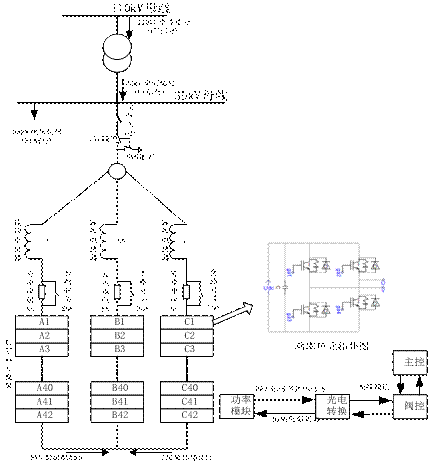 主電路拓?fù)浣Y(jié)構(gòu)如圖1.2所示,SVG模塊級(jí)聯(lián)后通過(guò)連接電抗器直掛于35kV母線(xiàn)。