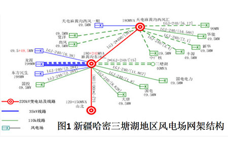 Santanghu area in Hami, Xinjiang is a typical weak AC system, where large-scale wind turbines are connected to the grid and sent out through long-distance AC. There are two 220kV wind power transfer stations in this area, with the names of Tiandianmahuanggou west wind power transfer station and Longyuanmahuanggou east wind power transfer station. The two 220kV wind power transfer stations share a 220kV transmission line, which is connected to 750kV Hami substation through Shanbei substation Power station.